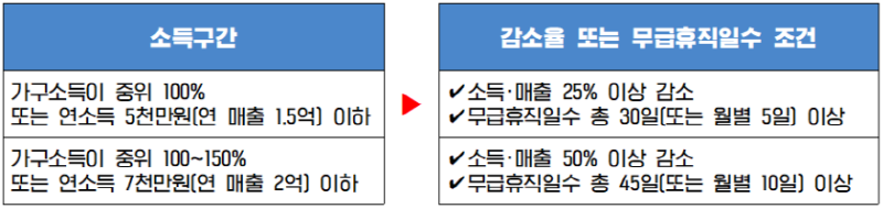 소득에 따라 소득·매출 감소율이 25~50% 이하,