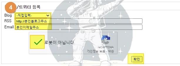 2. 좌측상단의 [블로그/트위터 등록] 버튼 클릭