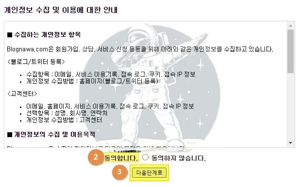 3. 버튼을 클릭하시면 아래와 같이 개인정보 수집 [동의합니다.] 체크 후 [다음단계]로 버튼 클릭
